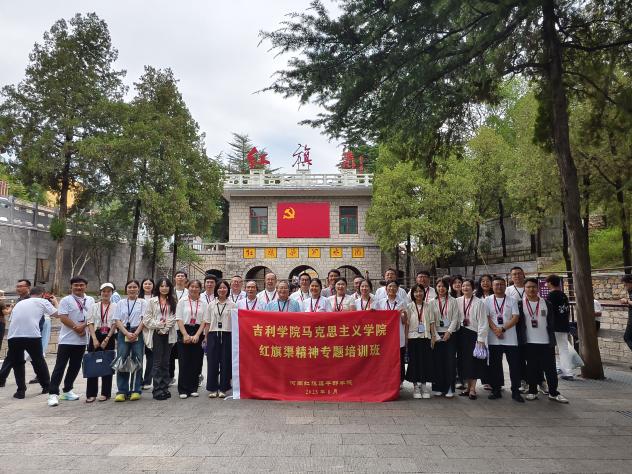 为深入贯彻落实习近平总书记关于学习红旗渠精神的重要指示精神,深入贯彻中央八项规定精神学习教育,全面加强党员党性教育,同时为进一步落实学校合格评估相关工作,推进马克思主义学院内涵建设,值此红旗渠总干渠通水 60 周年之际,我校马克思主义学院全体思政教师于8月21日至27日赴河南红旗渠干部学院开展红旗渠精神专题培训,通过专题讲座、现场教学、实地参观等多种形式,深刻领会“自力更生、艰苦创业、团结协作、无私奉献”的红旗渠精神。